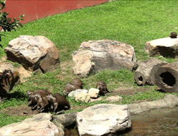 Otters chasing a butterfly.