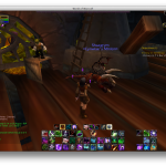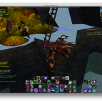 Because I could run the Beta on the MacBook, I didn’t expect what I saw when I launched the 5.0.4 client tonight – massive flickering. Some character screens were … mostly there, others (gnomes, looking at you) were mostly not. Logging into the game is a disorienting experience – one instant the frame will be mostly normal, then the floor will drop out, or rise up, or be partly there. It’s an unpleasant experience. You can see the in-game experience above.