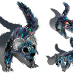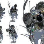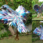 Upcycling shredded CD’s, Sean fuses them with wire mesh to create these glimmering creatures from the remains of dying technology: proof that, in the end, nature always wins out.